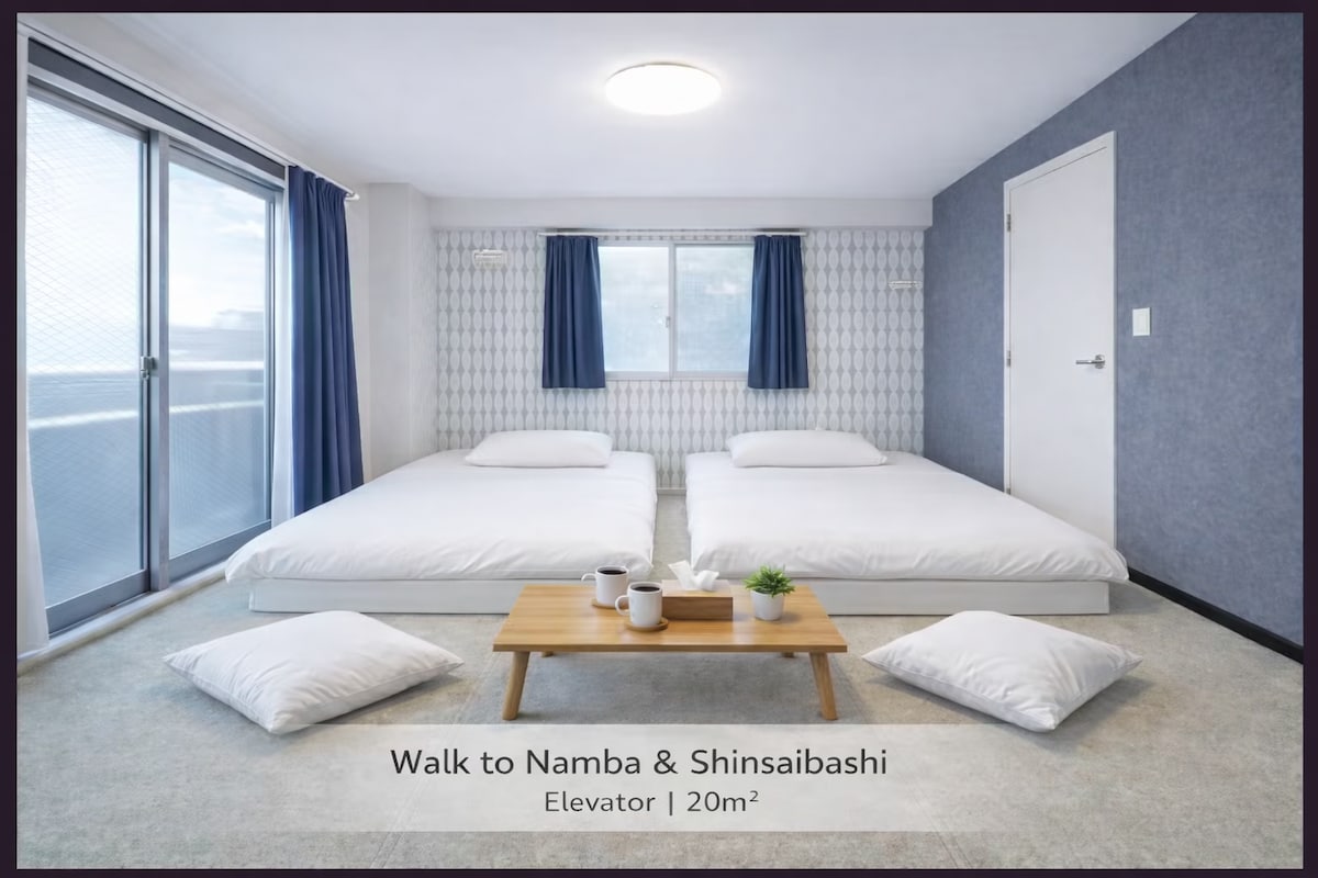 天下茶屋步行4分钟/机场直达/难波、心斋桥、梅田、USJ/全新日式/3卧室、2卫,2浴/可6-9人