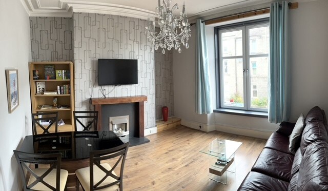 Liscence - AC68010F A welcoming and cosy place to enjoy your stay in Aberdeen. The flat consists of 3 large size bedrooms and a relaxing living room with a log burner and fully equipped kitchen. In great location for commuting to city centre, airport, work location or out into the scenic Aberdeenshire. Located on main route about a 10 minute drive from Aberdeen Airport, 4 min drive from Aberdeen Royal Infirmary and 8 min drive to P&J (tecca) events and concert venue. EPC - C