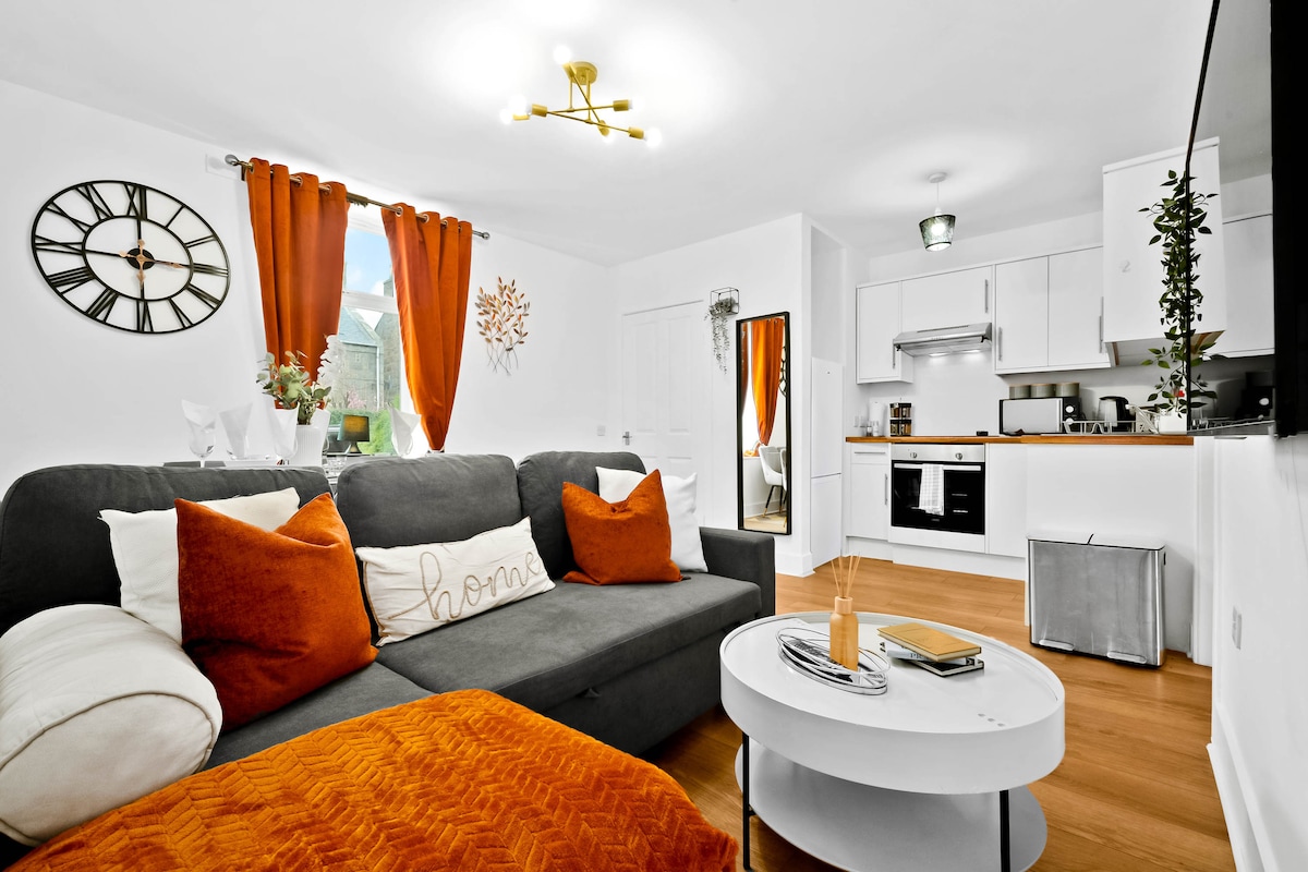 New to market, stylish 2-bed apartment on Aberdeen's edge - Perfect for city and shire adventures. Just 10 min by frequent buses (stop 2 min away) to the centre, and a 10 min stroll to the beach and nature reserve. Enjoy nearby parks, walking trails and the medieval streets of Old Aberdeen. Features a private gated drive for 3 cars, granite chips front garden and direct front door access. Relax in the modern, fenced, back garden. With deck,seating, table and ambient lighting for cosy evenings.