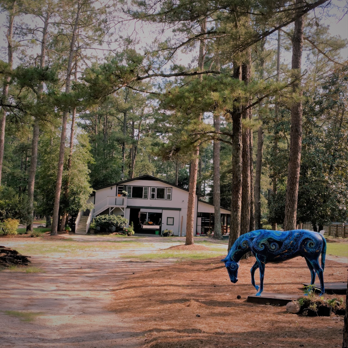 Bring your horse and your golf clubs! Welcome to Finally Home Farm Bed and Barn! A private 1 bedroom barn converted into a quaint cottage. Located on a peaceful farm just 2 miles from downtown Southern Pines, 1 mile from the back gate of Ft. Bragg and next to Weymouth Woods State Park, Finally Home Farm is the perfect place to explore all the Sandhills has to offer. *We are horse ($40) and dog friendly ($50) pet fee with Pre-Approval. Please include this info in your pre-booking.