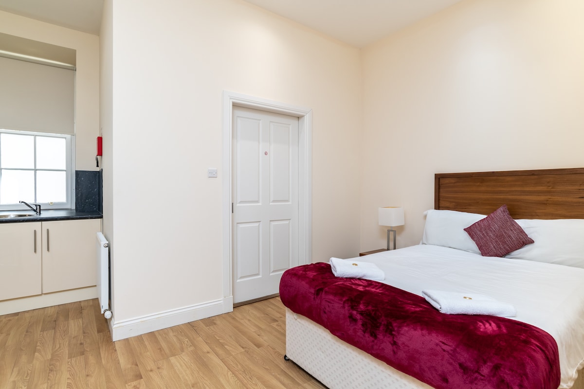 Spacious one bedroom flat in the heart of the city within easy walking distance of shopping, restaurants, bars, music hall, HMS theatre and all the city has to offer. King size bed with high quality mattress. Free Wi-fi. Paid on street parking available. College Street multi-story car park is also a 5 minute walk away. Short Term Let License AC61565F