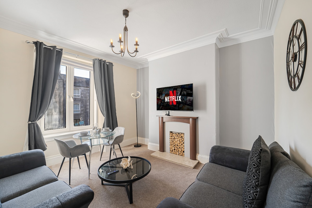 Welcome to Holburn Lodge, a professionally managed two-bedroom apartment on Holburn Street, 5 mins by Car or 15mins walk from Aberdeen city centre. This first-floor apartment sleeps up to 3 guests and is ideal for contractors, professionals and longer stays. You have easy access to Union Street, Altens and the A90 via Dee Bridge. Duthie Park, the Winter Gardens, and nearby shops including Asda, Boots and B&Q are all within easy reach. A practical, well-connected base for your stay in Aberdeen