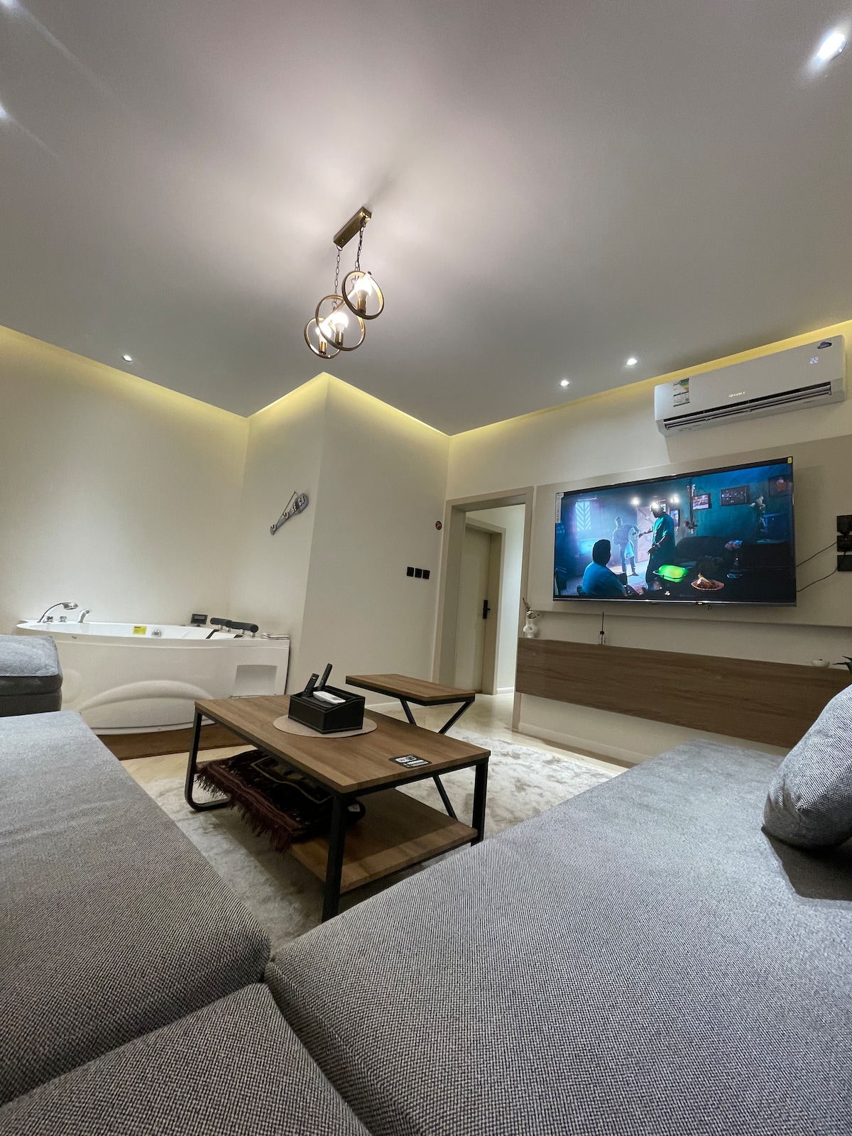 مرحبًا بك في شقتنا الفاخرة، التي تجمع بين الأناقة والتصميم الحديث والإطلالة المميزة على المدينة، مما يوفر إقامة استثنائية تتجاوز التوقعات. تتميز غرفة المعيشة المنفصلة الواسعة والمصممة بأناقة، بأرائك مريحة وتلفزيون ذكي للترفيه. توفر غرف النوم مراتب عالية الجودة للنوم المريح. تقع في قلب المدينة، وهي قريبة من المعالم السياحية والمطاعم. توفر شقتنا غرفة معيشة واسعة ومصممة بشكل جميل، مثالية للاسترخاء أو الترفيه. يتميز بتلفزيون كبير 65 بوصة 4K وأريكة مريحة ونت بسرعة 300قيقا، لجعل إقامتك أكثر متعة.