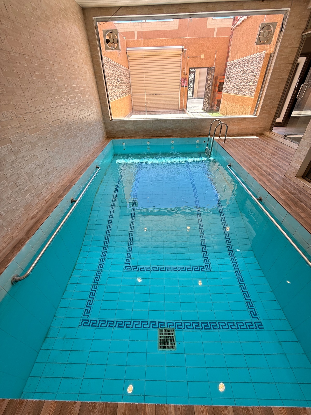 Stay in a luxurious residence near everything you want to visit. Amenities: • Al-Mansak Park and Walkway (1-minute walk) • Mosque (1-minute walk) • Commercial Street (1-minute walk) Apartment Features: • Courtyard (outdoor seating + charcoal grill) • Living room (seating area + TV + dining table) • King bedroom with private bathroom • Kitchen (coffee maker + refrigerator + electric and gas oven + grill + automatic washer and dryer) • Guest room with 4 beds and an en-suite bathroom