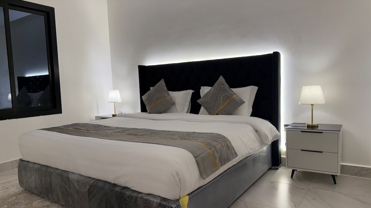 A lovely apartment in a stylish design that suits you and brings you the enchanting stay you are looking for. Fitted with modern and comfy furniture that we have taken care of all the details to ensure tranquility and calmness you deserve to spend an enjoyable vacation or to get relaxed after a long working day. Services and cleanliness are of high quality. You can also enjoy a pleasant time on the terrace watching the sunset and overlooking Northern Obhur.