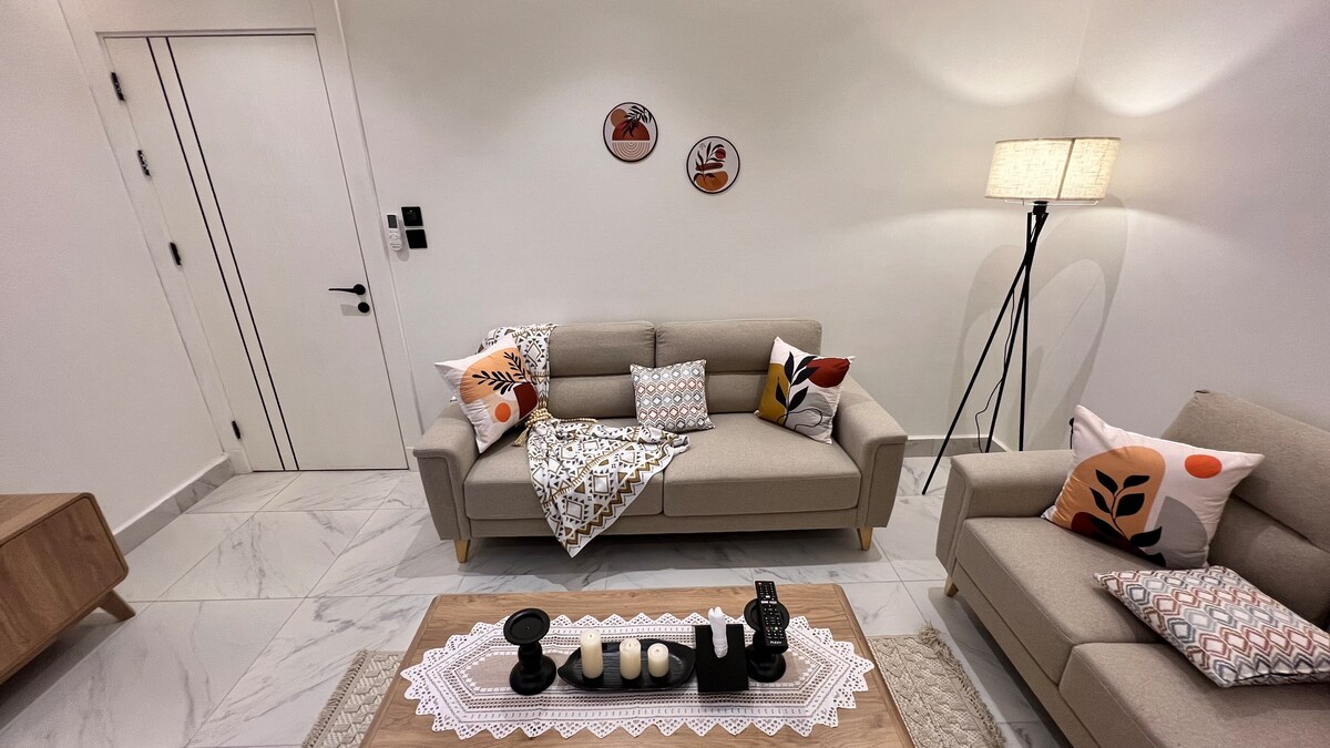 Charming, contemporary Beach Apartment in the heart of Obhur. Just a couple blocks away from amazing beach resorts, restaurants, bbq, cafes, bars, breweries, and so much more. Perfect for a weekend getaway, business trip, staycation, work-from-home alternative, or cozy home base while exploring everything Jeddah has to offer. Unbeatable location with sea front view, Aljawhra Stadium, shopping malls and many more just minuets away. The airport are 15 min away.