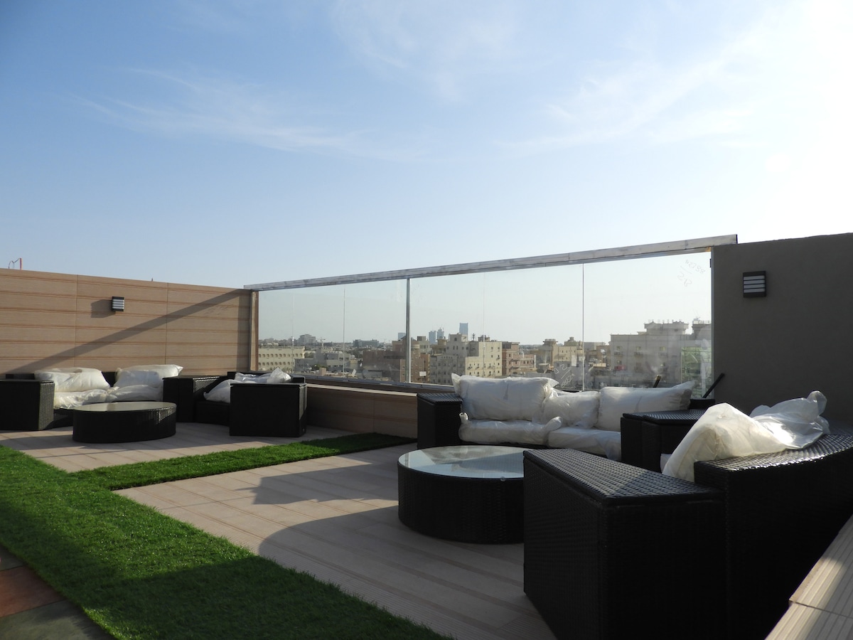 A lovely apartment in a stylish design that suits you and brings you the enchanting stay you are looking for. Fitted with modern and comfy furniture that we have taken care of all the details to ensure tranquility and calmness you deserve to spend an enjoyable vacation or to get relaxed after a long working day. Services and cleanliness are of high quality. You can also enjoy a pleasant time on the terrace watching the sunset and overlooking Northern Obhur.