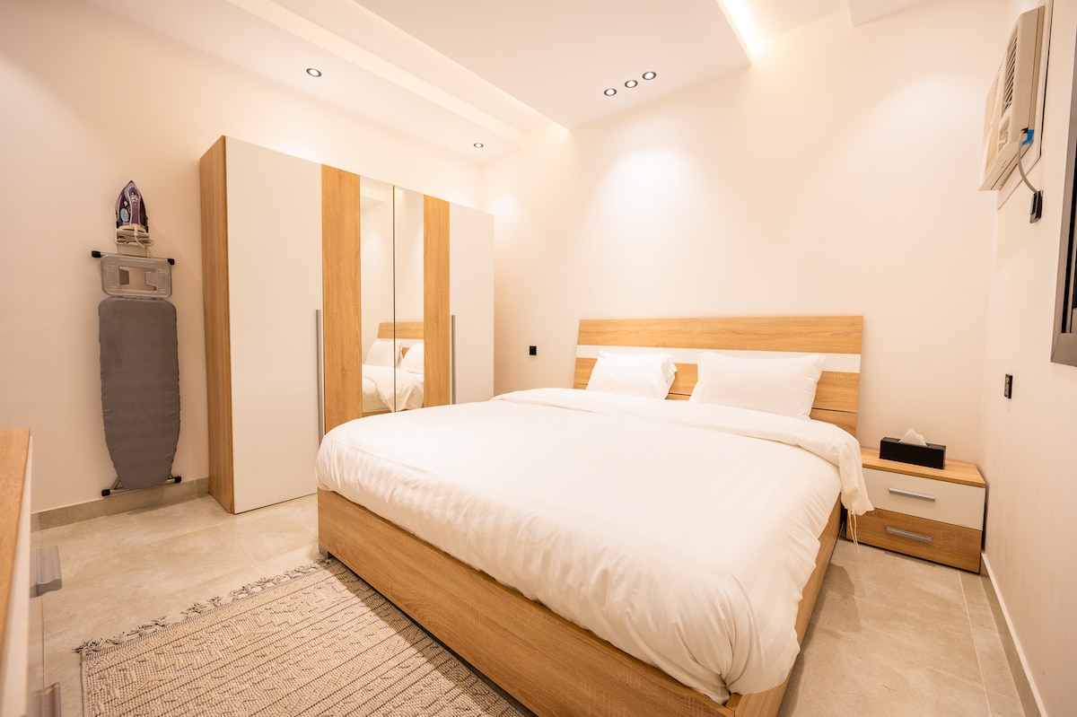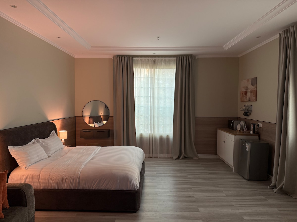 Welcome to our stylish studio in South Ubhur, Jeddah! Ideal for couples or solo travelers, enjoy a comfortable stay with a king-sized bed, smart TV, and equipped kitchenette. The sleek bathroom offers a walk-in shower and toiletries. Stay connected with Wi-Fi and relax in air-conditioned comfort. Just steps from local attractions, shopping, and dining, our studio is perfect for exploring Jeddah's rich culture. Experience a memorable stay in this captivating city!