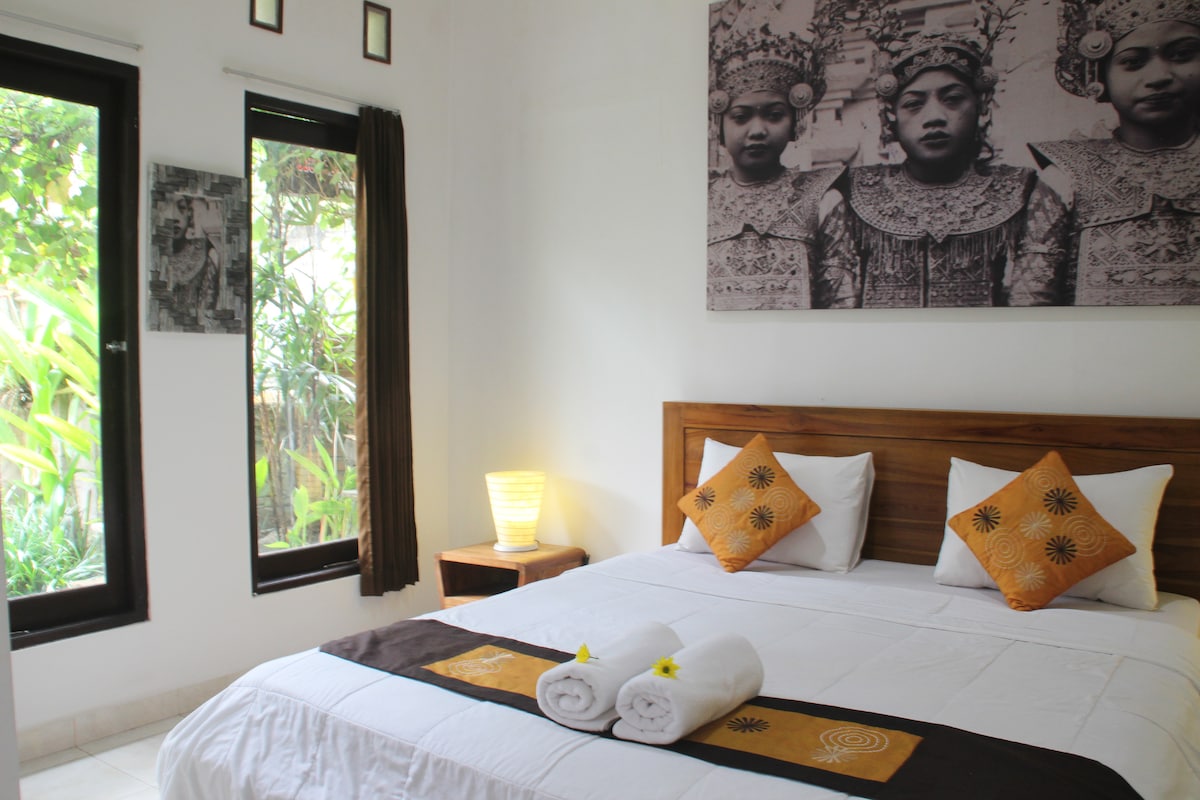 Our spacious and comfortable rooms have a queen-sized bed and provide hot and cold shower,wifi access,fan and Airconditioner . Breakfast is included. We are located just 700m away from Monkey Forest and a 10 minute walk away from Ubud center. Im also provide taxi service for pick up,drop off,day trips around Ubud: Rice terrace Holy water temple Coffee plantation Waterfall Elephant cave temple Sunrise trekking Water rafting Cycling tour Cooking class Etc Please asking me for more information:)