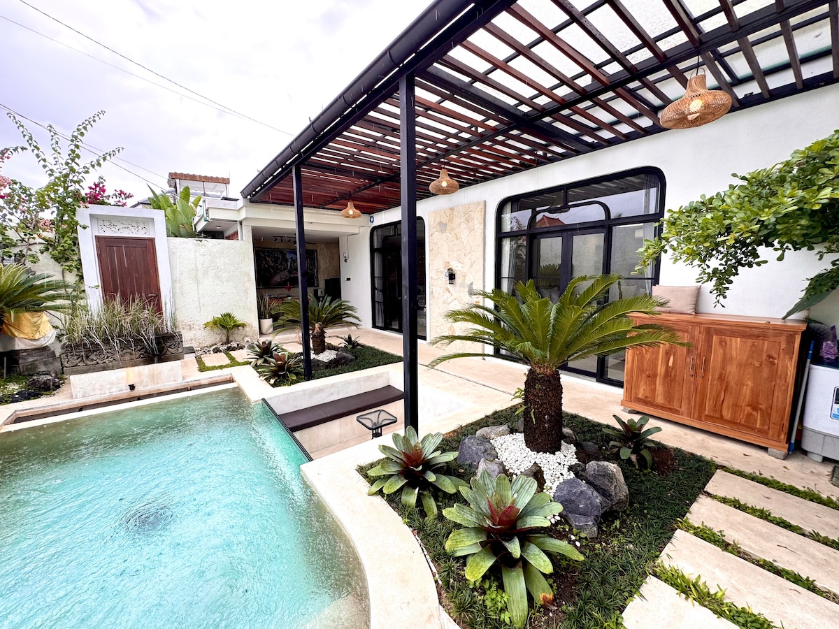 Kick back and relax in this calm, stylish space. The villa stands out with its contemporary design and inviting atmosphere. Located just a stone’s throw from Ubud center—only 8 minutes by scooter—you’ll still enjoy the quiet and peaceful surroundings of the area. Unwind by the pool with a cup of tea, whether you're with friends, family, or your loved one—it's the perfect way to spend the day...