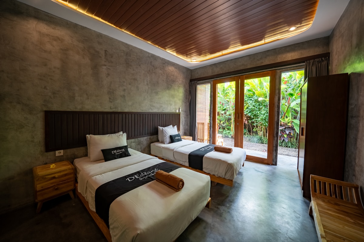 Minimum 2 nights stay required Immerse yourself in the authentic Balinese experience at our beautiful individual wooden house. Located at Ubud surrounded by lush rice paddies, perfect setting to unwind and connect with nature. ⚠️ Important Information Before Booking: 🏡 Located right next to a rice field 🌿 Tropical Environment - As this is a nature-rich area, you may encounter insects, bugs, and other small tropical creatures 🍽️ Breakfast is included and served at the restaurant