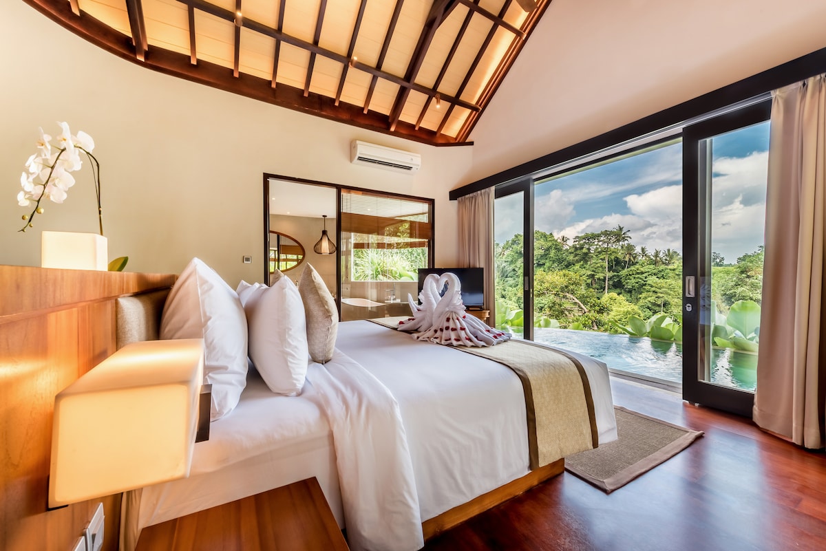 乌布树屋度假屋|玻璃泳池、山谷景观