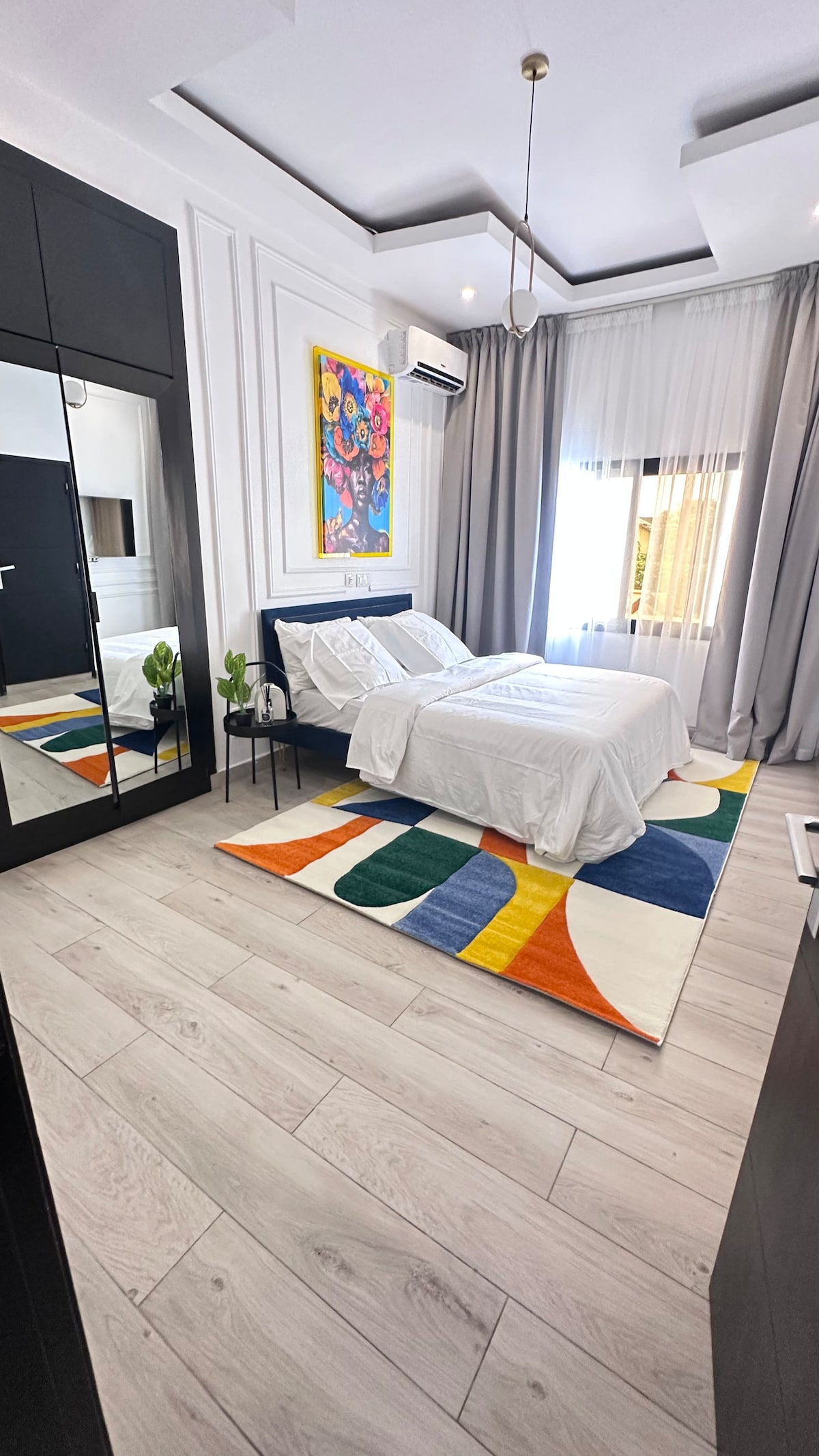 Plongez dans un univers de raffinement où l'élégance se décline en nuances de noir, blanc gris et bois. Chaque détail a été pensé pour créer une atmosphère luxueuse et chaleureuse, idéale pour les voyageurs en quête d'un séjour inoubliable. Profitez d’un espace de vie lumineux , d’une cuisine européenne équipée , une literie de qualité et un wifi illimité avec 2télévisions connectées. Parfait pour les voyageurs en quête de confort et de style, cette résidence vous promet un séjour inoubliable.