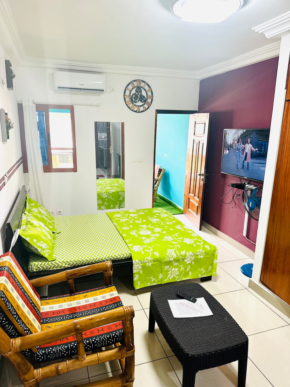 Vous bénéficierez d'un endroit paisible, simple et agréable a vivre, accès facile à tous les sites et avec toutes commodités. Notre résidence meublée est dotée de: -WiFi illimité - cuisine équipée - Chambre lumineuse -cadre simple et chic -Climatisation Disponible pour vos longs et courts séjours. 25.000fr soit 40€ par jour
