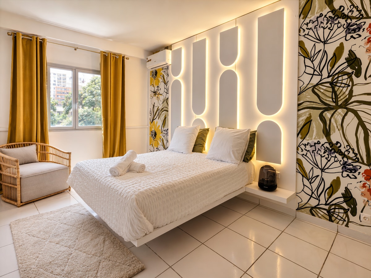 🏅Top 10% most loved homes on Airbnb. Enjoy a stylish 3-bedroom apartment in the heart of Zone 4. Bright, elegant, and cozy, it features tasteful decor, soft tones, golden accents, and local art. Perfect for relaxing or working remotely, with hotel-quality bedding, a fully equipped kitchen, and daily cleaning included. 24/7 security ensures peace of mind during your stay in one of Abidjan’s most vibrant neighborhoods.