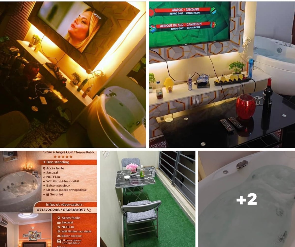 Si vous recherchez un endroit spacieux, moderne et unique au coeur de Cocody, l'appartement de Kouadio est fait pour vous. Plus de 250 m² pouvant accueillir 6 adultes et offrant un beau rooftop avec jacuzzi, n'hésitez plus, rendez-nous visite ! Nous disposons également d’un groupe électrogène en cas de coupure de courant 😊