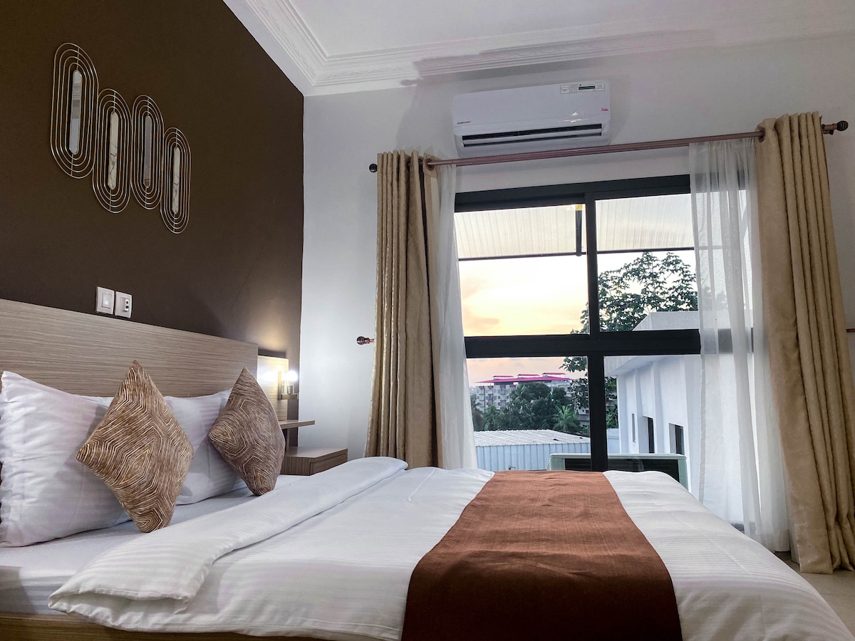 BlueBay Hôtel Abidjan is a 3-star hotel in Cocody – Riviera Palmeraie, combining modern comfort and elegance. Just 30–40 min from Félix Houphouët-Boigny Airport, We offer 25 standards rooms with air conditioning, Wi-Fi, premium bedding, and modern bathrooms. Each Standard Room can accommodate 2 adults, featuring a Double bed, private bathroom, minibar, flat-screen TV, desk, free Wi-Fi, and complimentary breakfast.