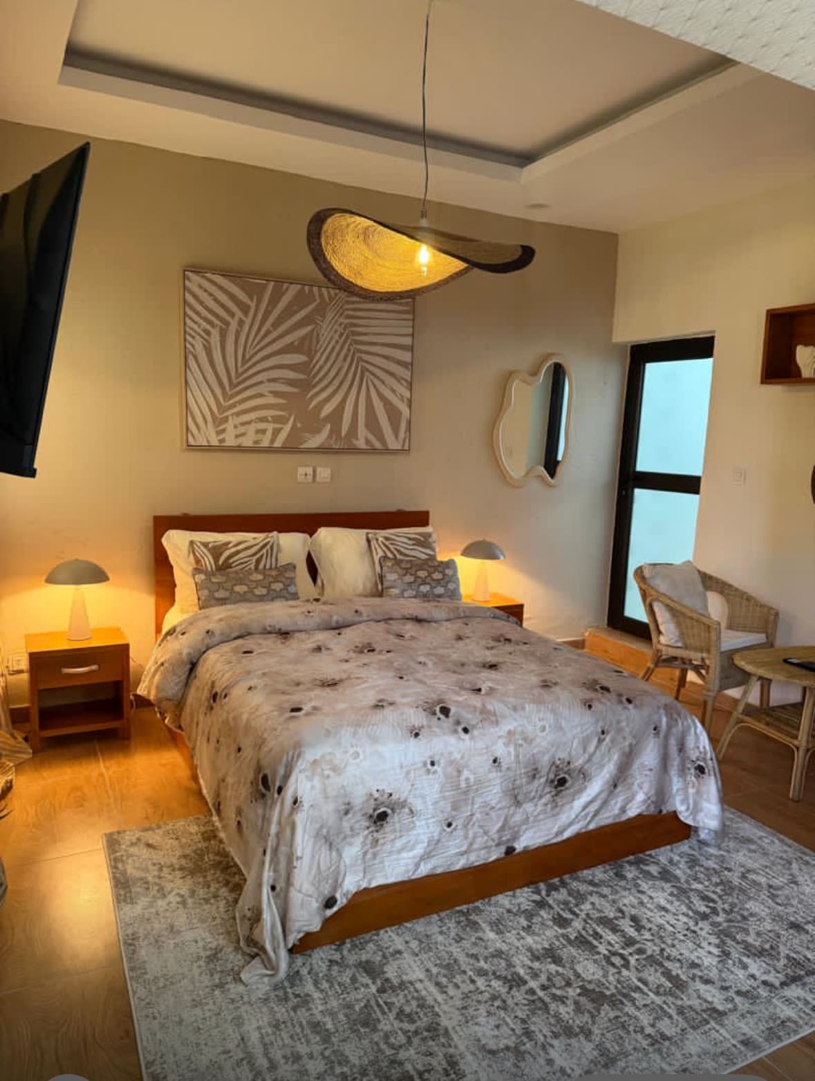 Séjournez en plein cœur d'Abidjan dans ce sublime appartement neuf, paisible et chaleureux, décoré avec goût dans des tons naturels et une ambiance moderne propice à la détente. Cet appartement spacieux et entièrement privatisé est situé au 2ème étage d’une résidence calme et sécurisée, parfait pour un séjour professionnel ou des vacances reposantes. Le logement est situé à 25 minutes du Plateau, 35 minutes de l’aéroport et à 10 minutes d’Abidjan Mall.