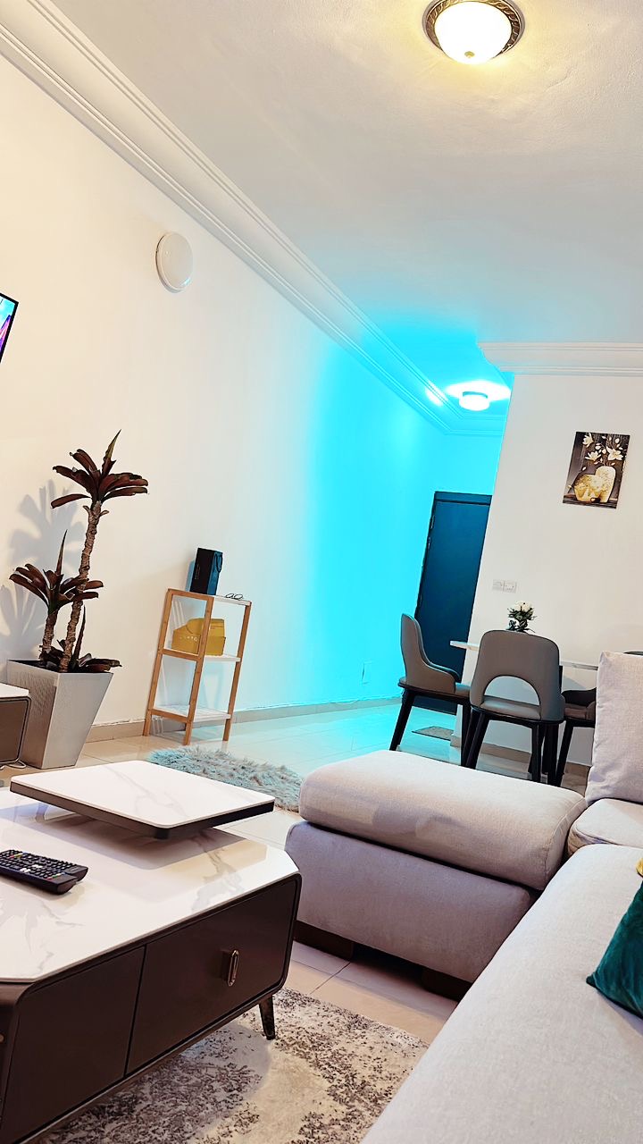Séjournez en plein cœur d'Abidjan dans ce sublime appartement neuf, paisible, chaleureux, décoré avec goût dans des tons naturels et une ambiance moderne propice à la détente. Cet appartement spacieux et entièrement privatisé est situé au 2ème étage d’une résidence calme et sécurisée, parfait pour un séjour professionnel ou des vacances reposantes. Le logement est situé à 25 minutes du Plateau, 35 minutes de l’aéroport et à 10 minutes d’Abidjan Mall. A proximité de nombreuses commodités.