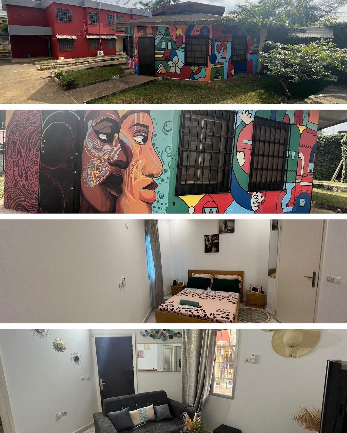 Profitez du meilleur spot d’Abidjan, à Cocody Angré 8è Tranche ! Ici tout a été pensé pour que vous vous sentiez vraiment bien : une grande terrasse aménagée privée pour vos apéros au coucher du soleil, un espace extérieur fermé avec son propre bar pour des soirées à l’ambiance tropicale et une déco intérieure unique qui mêle modernité et vibes africaines. Nous proposons aussi des services supplémentaires: • Véhicule/Massage/Pressing/Restauration/Décoration à thème/Acheminement vers aéroport