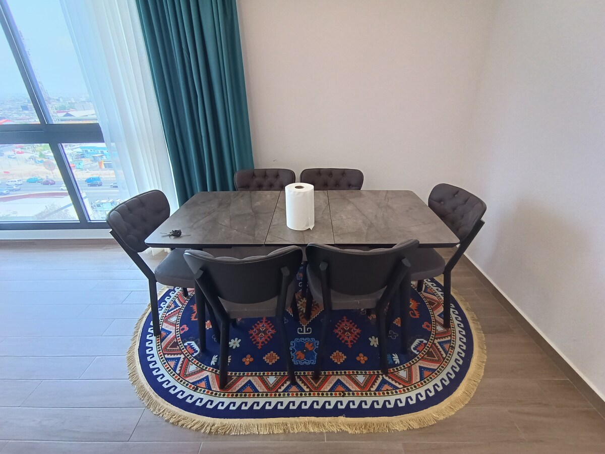 NÍMA HOME opens the doors to an exceptional high-end one-bedroom apartment (T2), close to all amenities! Located in Cocody Angré – 8th Tranche, this apartment combines refined interior design with absolute comfort: a spacious bedroom with private bathroom, a guest restroom, a large living room, a fully equipped kitchen, and a terrace. Enjoy our exclusive services: round-trip airport transfers and à-la-carte catering options, available on request. Your perfect stay in Abidjan starts here.