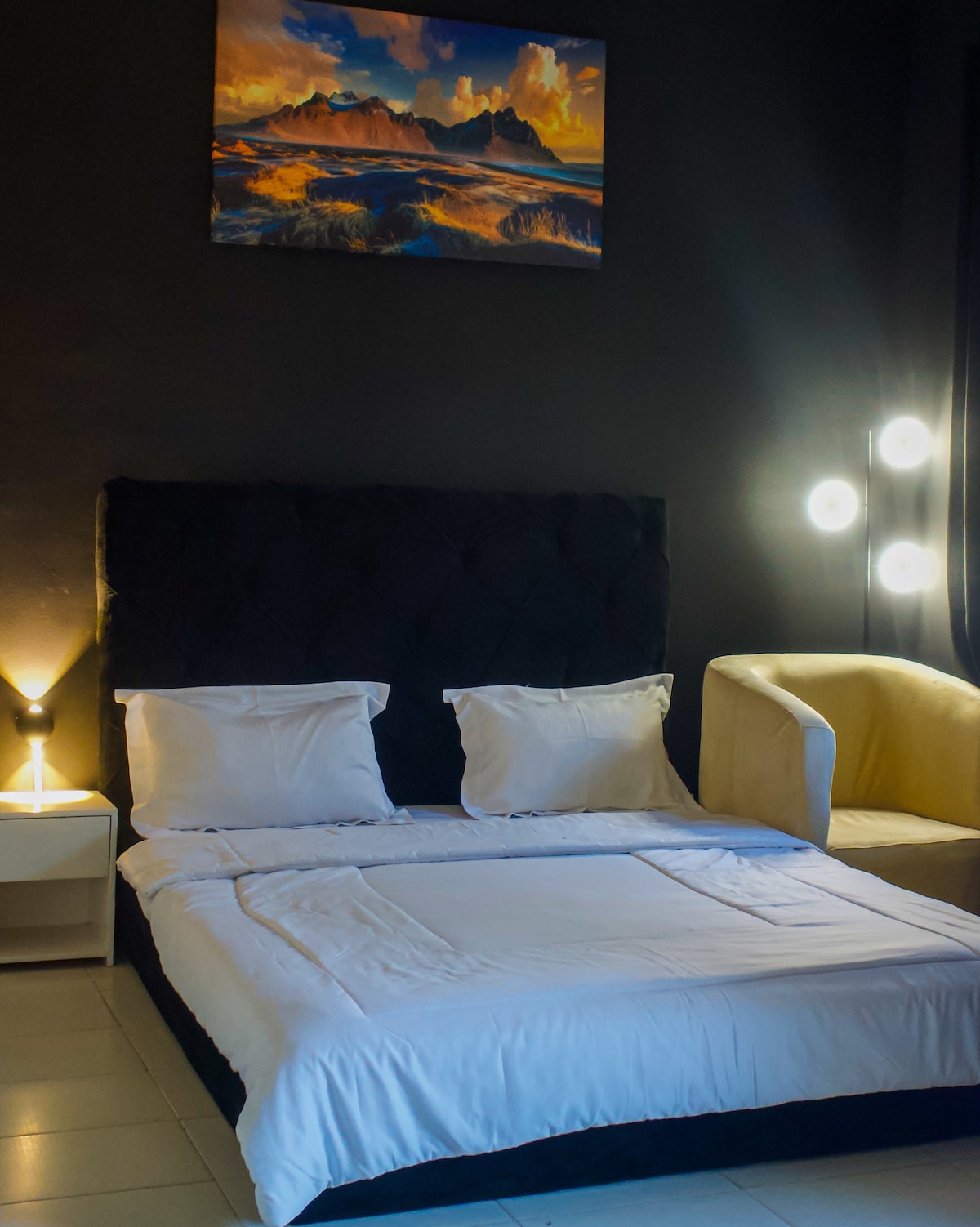 ★ ”..Alains Apartm. is well situated, he is a care taking..” Hortense ☞ 32” HDTV ☞ 50MBs Wi-Fi ☞ 7/7 Security Guard ☞ Water cooker for hot showers ☞ Air-Conditioner ☞ Free Parking » 9min drive to Kafolo Lagoon » 7min drive to Carrefour market » 30min drive to Airport Add my listing to your wishlist by clicking ❤️ the in the upper-right corner. If you have a 2+ reservation, you will need to use more furnitures than the bed. Don't worry we will show you how to use the other sleeping places.