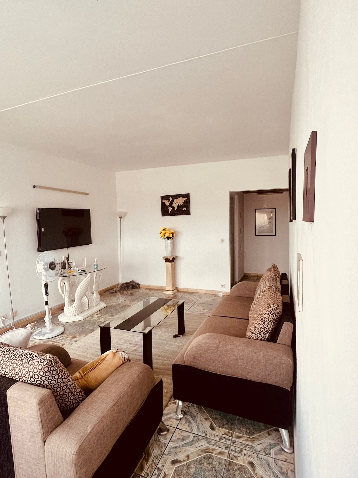 ✅️ Top 5% most loved homes on Airbnb. ✅️ Free daily cleaning. ✅️ 24-hour security. Profitez d'un logement élégant et central dans la ville et glissez-vous dans l'ambiance cosy de ce charmant quatre-pièces en Zone 4. Les bonnes ondes sont à l'honneur dans une harmonie d'art,de musique, et d'or où triomphent la douceur et la lumière.