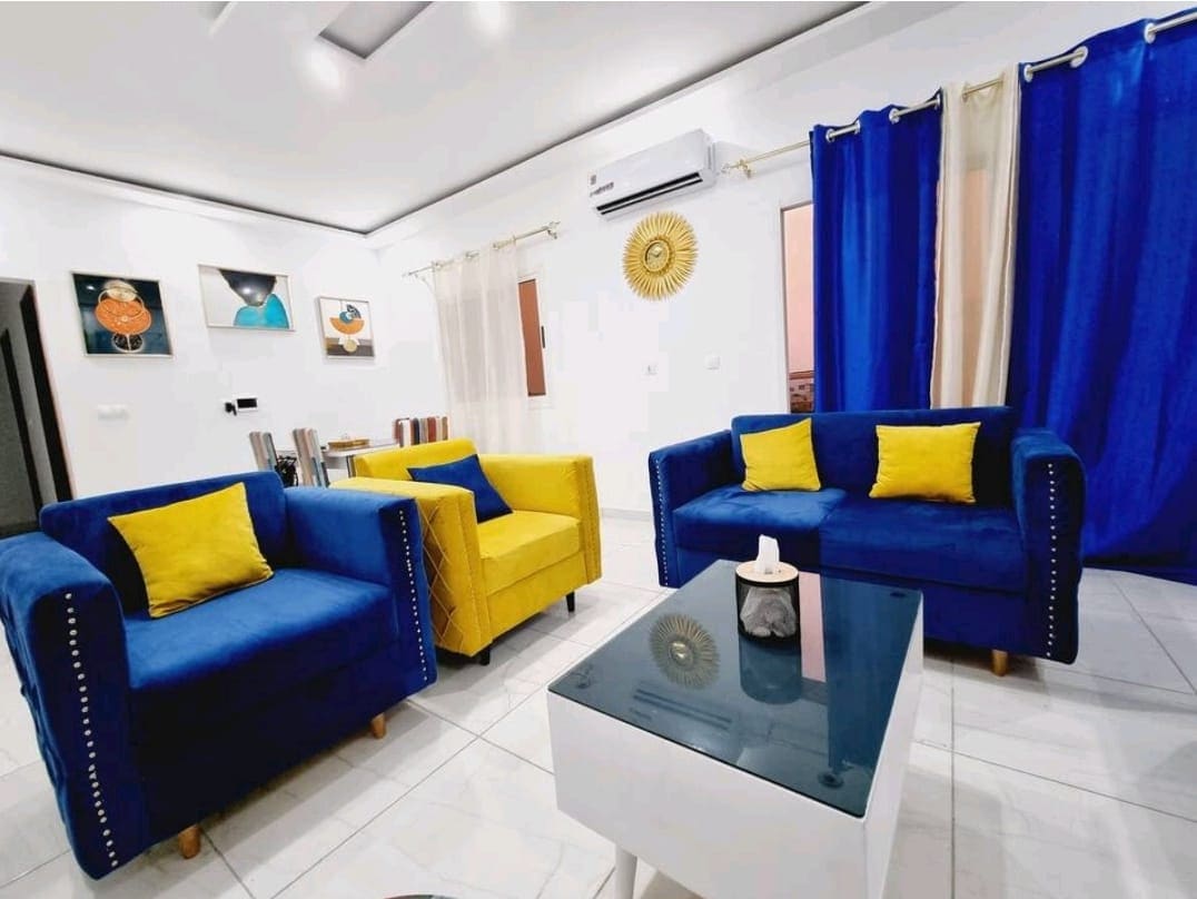 Tres bel Appartement meublé situé à Abidjan Cocody Riviera palmeraie St Viateur Confortable, lumineux, spacieux avec toutes les commodités( wifi, climatisée, femme de ménage, réception, sécurité H24, chauffe-eau, Interphone...)