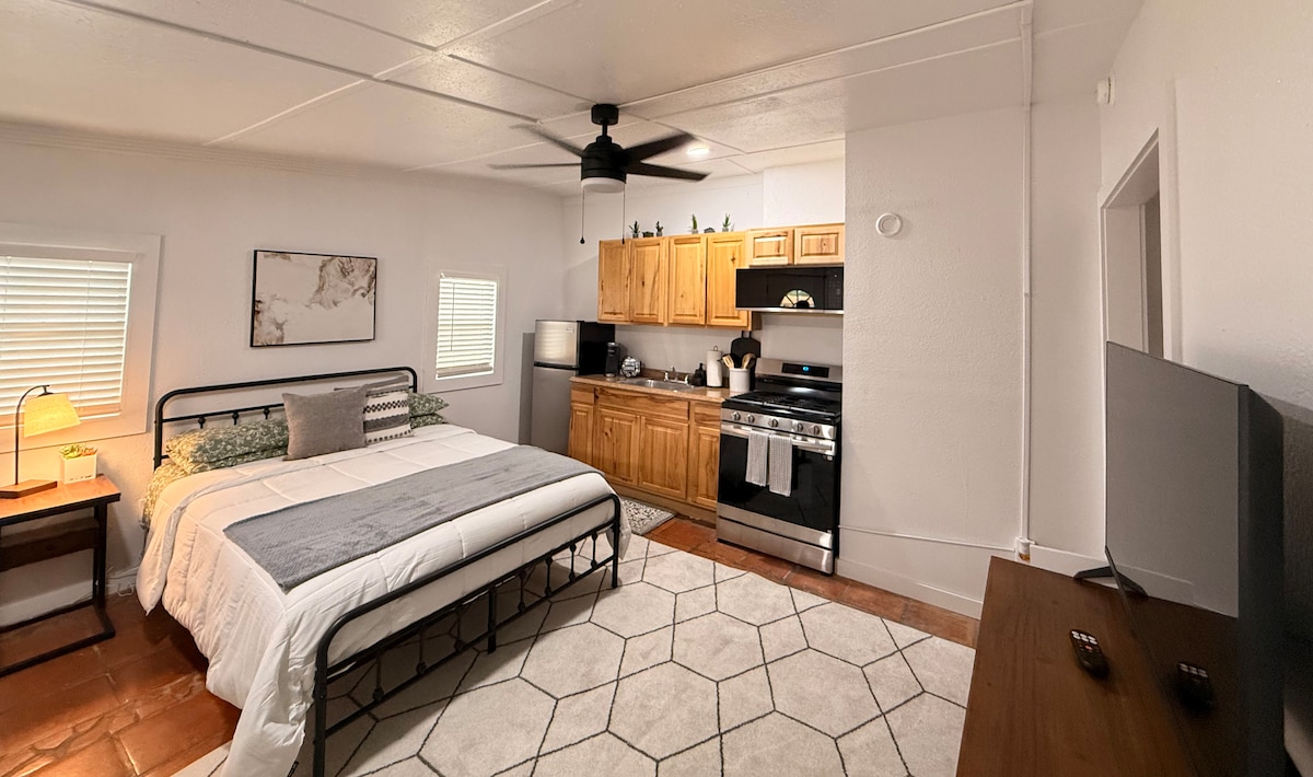This open, cozy first floor studio is the perfect base to explore Abilene. Located in a secure block between beautiful Abilene Christian and downtown, this historic living space has everything to make you feel at home – WiFi, Netflix, queen-sized bed, well-equipped kitchen, and much more. Conveniently located just minutes from Abilene Christian University, Downtown, I-20, the Expo Center, Hendrick Hospital, and Hardin-Simmons University.