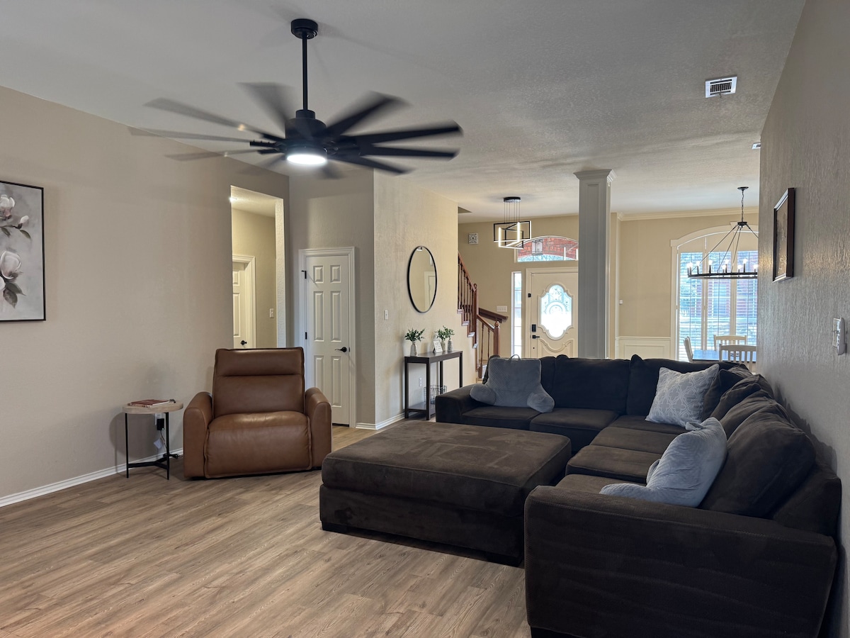 Welcome to Sunshine Chalet! This newer home near Abilene's Soda District is perfectly appointed to be your ideal home away from home. Whether you are visiting your local college student, attending a wedding at one of the many nearby venues, or enjoying a couples retreat within walking distance of the best local hot spots - look no further! Enjoy an unparalleled clean, 3bd, 2.5ba, 1850 sqft home w/ WiFi, 2 Roku TVs, private yard w/ firepit, Tesla charging, and so much more!