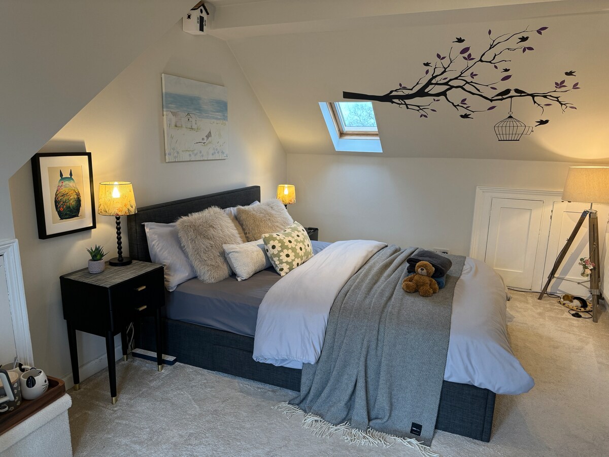 Beautiful annex in family house in picture perfect village. New loft conversion, immaculate condition, light & bright; bedroom, kitchenette with combi-microwave oven, ensuite, wifi, private access, on street parking. Nr 3 pubs & Coop; Didcot train station 7 mins, Oxford 20 mins, buses to both. Perfect base to explore the Oxfordshire countryside & historic Oxford. Non-smoking. Washing machine & dryer available on request. Mon to Fri lodging available, ideal for Milton Park, Culham and Harwell.