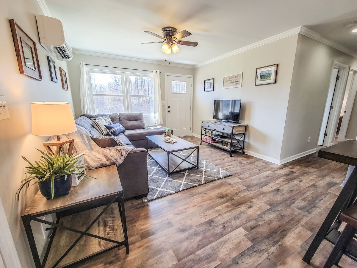 Entirely renovated, this darling cottage overlooks the meadow with stunning mountain views. Located 5 min to charming downtown West Jefferson. This vacation cottage has so much to offer! With its location, you can enjoy outdoor activities such as hiking, canoeing/kayaking, fishing, along the New River, nature walks and biking on the Blue Ridge PKWY. The cottage is stocked with many convenient amenities and also offers an area for outdoor dining with a charcoal grill and an open fire pit