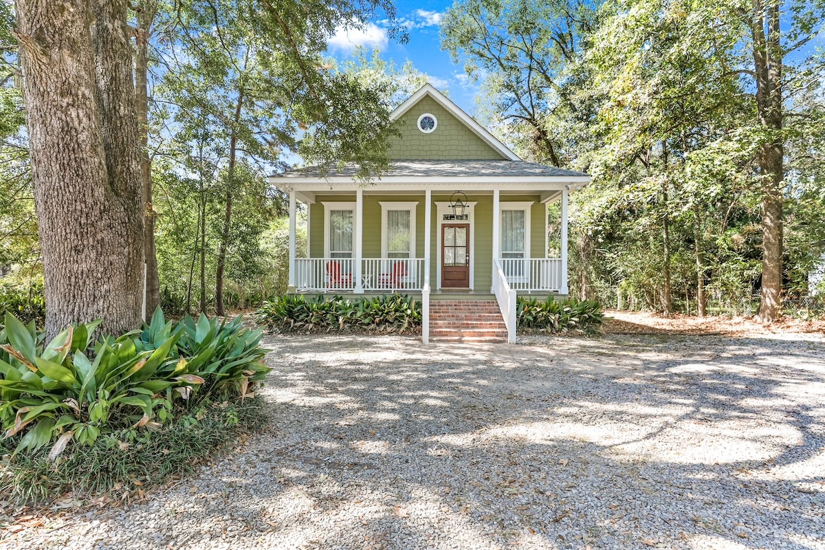 Escape to this charming, bohemian-style cottage in the heart of Folsom, where tranquility and unique decor meet. With two cozy queen bedrooms, a stylish kitchen featuring a handmade cypress countertop, and a serene living area bathed in natural light, it's perfect for unwinding. Walk to local markets, coffee shops, and Magnolia Park, or explore Bogue Chitto State Park. Pet-friendly with a $75 fee. Relax and recharge in this peaceful getaway!