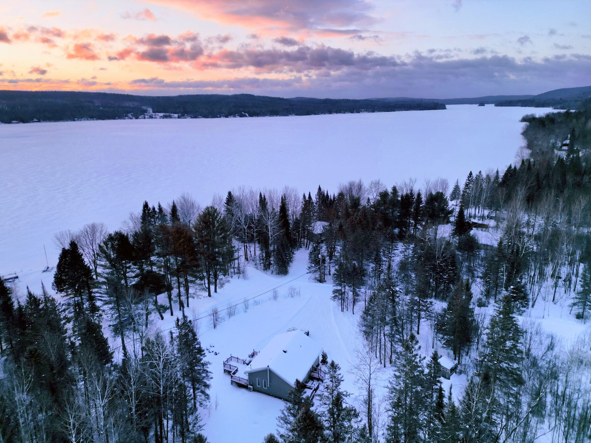 Chalet agréable, en aire ouverte, très bien éclairé par les fenêtres. La rive du lac est privée sur la largeur du terrain. Il y une agréable petite terrase adjacente. C'est un petit lac, à l'eau claire et plutôt froide, car elle vient principalement de sources souterraines. Sans embarcations motorisées (à essence). Terrain intime, avec beaucoup d'arbres. Place pour feu de camp. Forêt juste derrière, avec de beaux sentiers. Un sentier de motoneige est tout près.