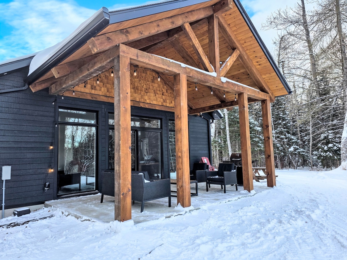 💎 UN CHALET HAUT DE GAMME -4 chambres spacieuses -Grande aire ouverte avec îlot en quartz -Table pouvant accueillir 12 personnes et plus -Salle multifonction (formation, yoga, détente) -Spa extérieur 7 places -Sauna intérieur avec plancher chauffant -Foyer intérieur et extérieur Un véritable espace pour relaxer en toute saison. -Accès direct au lac -Activités estivales et hivernales -Accès aux sentiers de motoneige -Grand stationnement (remorques acceptées) -Laveuse / sécheuse Climatisation