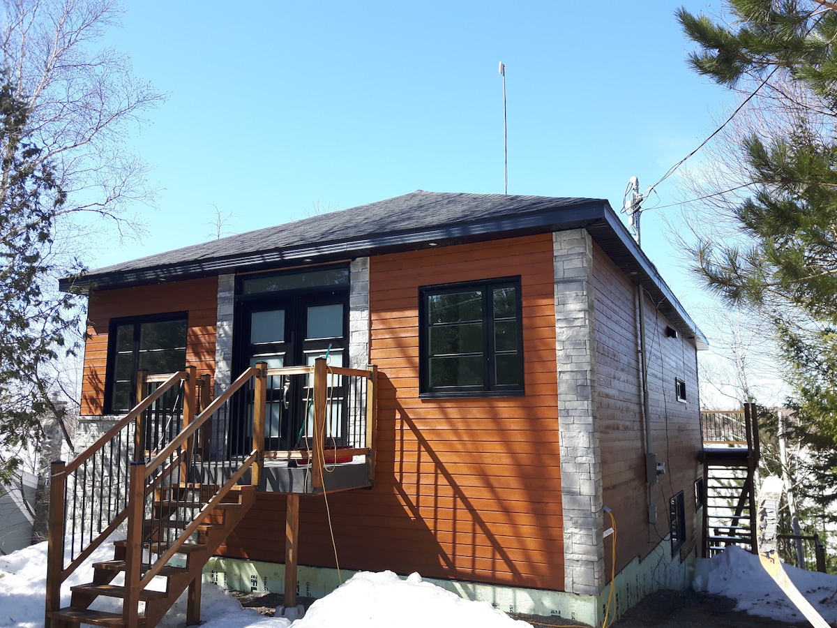 10 min from Maniwaki- Surround yourself with the calmness of nature. The lake views from the warmth of the spa wont disappoint in any season. The kitchen is stocked, bbq ready to go, lots of linens to keep you cozy. The property is easily accessible all year with any vehicle. The Swimming in this crystal clear spring fed lake is heaven (Kayaks and SUP included) The cottage has 2 bedrooms upstairs and 2 beds downstairs (caution, low ceiling just perfect for sleep.