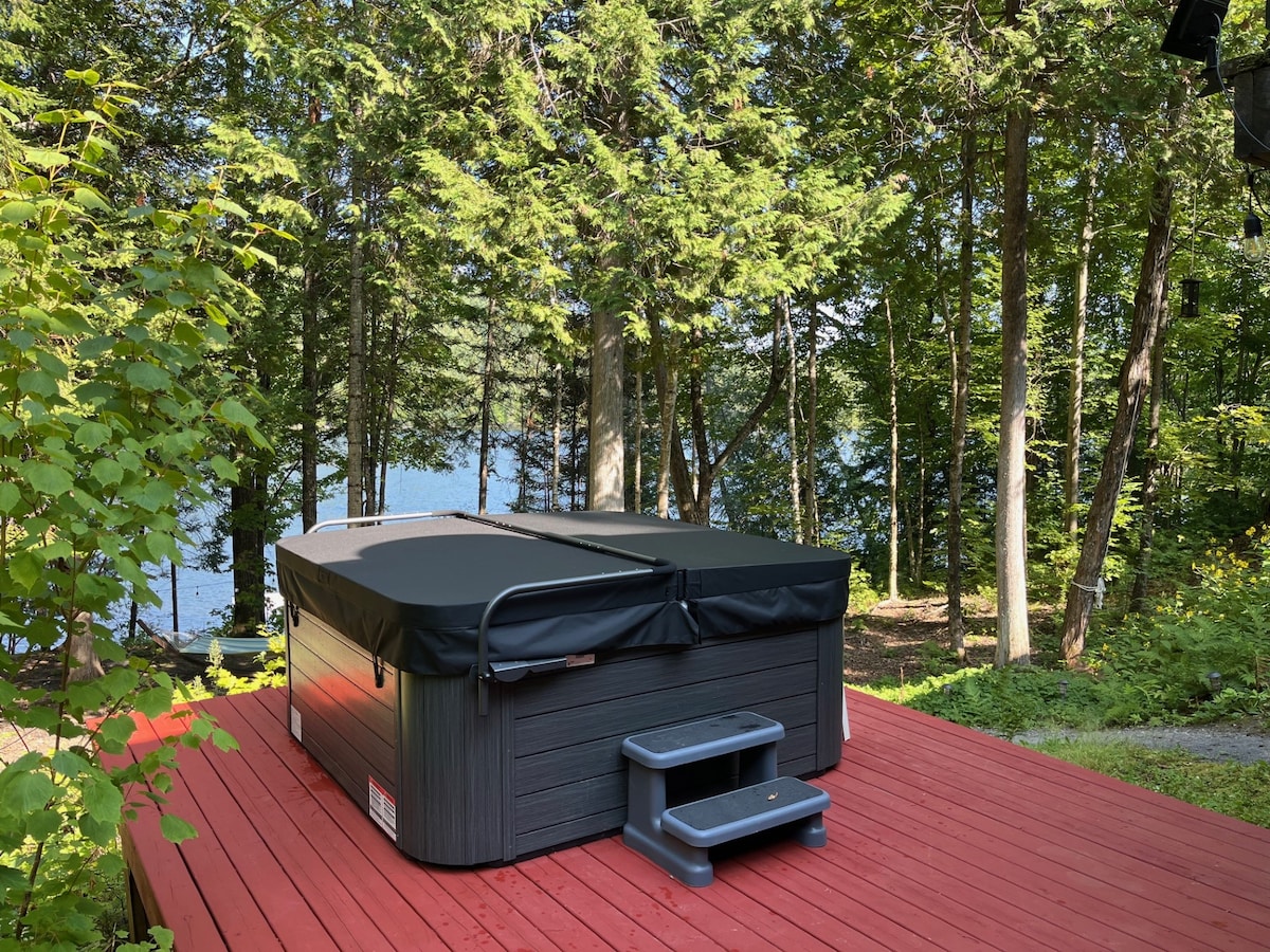 NEW PRIVATE HOT TUB to enjoy stargazing on a beautiful winter night. Brand new fat bikes for all season biking. Snowshoes supplied for our private trails. Awesome skiing at Mount Antoine which is only a 15 minute drive, they boast the longest downhill run in Ontario. 55" HD tv, Keurig coffee, fully stocked kitchen, BBQ and firepit..... You get excellent privacy. Property is situated across from Samuel De Champlain Provincial Park. Make this cozy cabin home away from home. Outdoor smoking only.