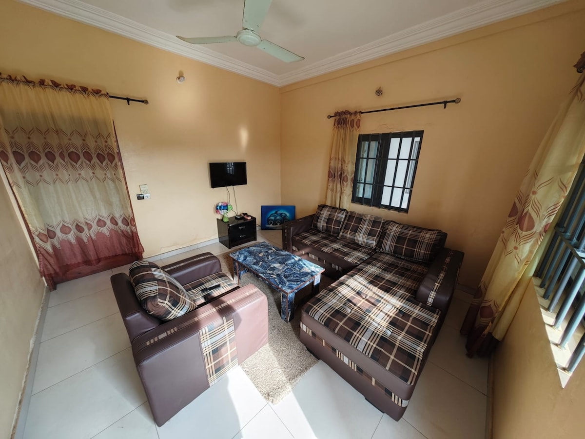Welcome to your haven of peace! Located in a quiet and secure area, this magnificent F2 apartment combines comfort, modernity and elegance to offer you an unforgettable stay!. This accommodation has a personal entrance, a garden, a cozy living room and an elegant & relaxing bedroom: Enjoy a cozy bed with hotel quality sheets for peaceful nights. Location: JAK DISTRICT, AKPKAKPA, COTONOU ELECTRICITY COSTS ARE NOT INCLUDED (see below)