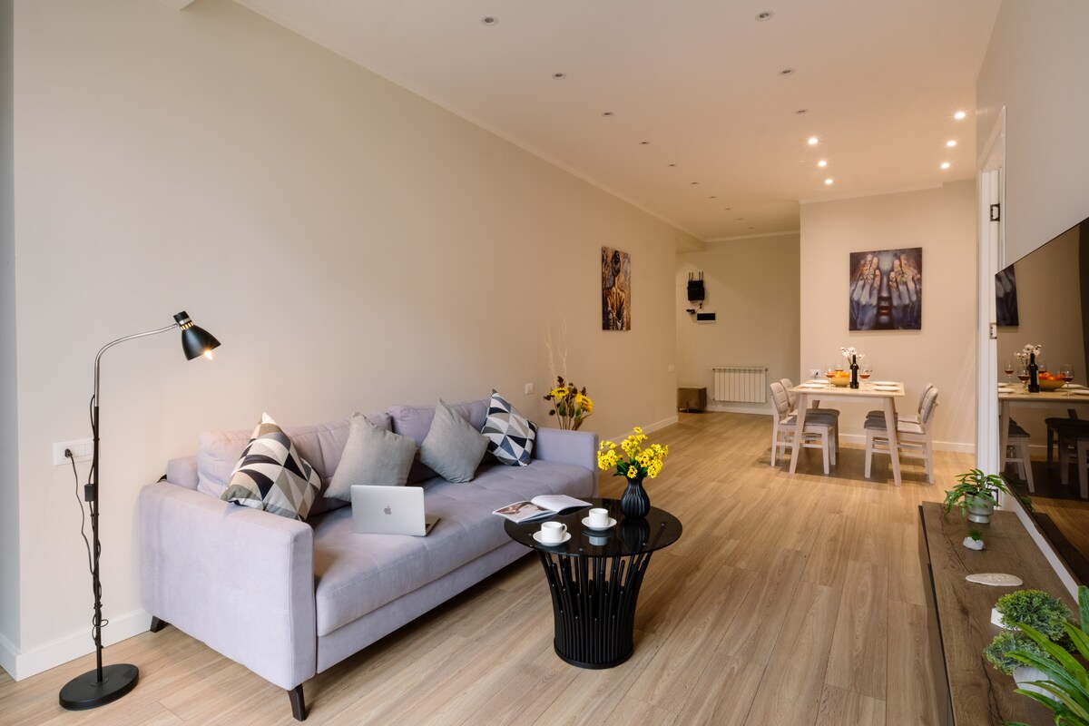Enjoy stylish experience at this centrally-located one bedroom apartment,which sleeps 4 guests.Great location and conveniently accessible to everything you need for a long or short trip.Living room and dining area with a sofa bed,kitchen with appliances inc microwave and coffee machine,bedroom with double bed,bathroom and balcony. Your health is our priority.Our home follows an enhanced cleaning protocol,with a professional cleaning strategic disinfection. Enjoy your stay!