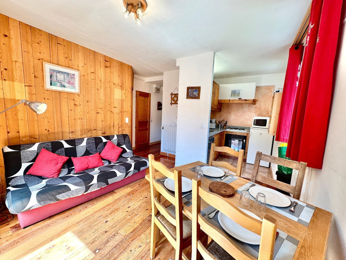 Charmant appartement 4 couch. de 28 m2 situé à Abriés dans une résidence de tourisme étoilée, équipé d'un lave-vaisselle, frigo, micro-ondes, plaque de cuisson coté cuisine, lit 160x200 coté chambre, convertible 140x200 coté séjour. La résidence est équipée d'un parking, d'un local à ski et donne accès à un magnifique solarium avec piscine et jacuzzi (uniquement en haute saison). Nombreuses activités sur place: ski, randonnées, VTT, rafting, via ferrata, parapente, chiens de traineaux...