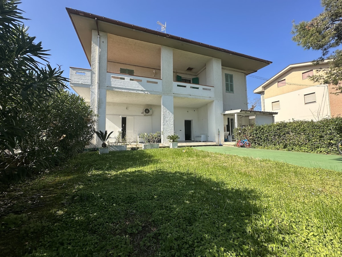 Una vera e propria casa vacanze ..comoda ,spaziosa con uno stabilimento proprio di fronte casa!!!Grande giardino privato per rientrare le macchine,fare grandi grigliate con gli amici e rinfrescarsi con la doccia esterna.Ristrutturata completamente nel 2024 con infissi nuovi e climatizzazione estiva ed invernale. il terrazzo sul mare ,la brezza sempre presente e le grandi camere renderanno il soggiorno divertente e riposante