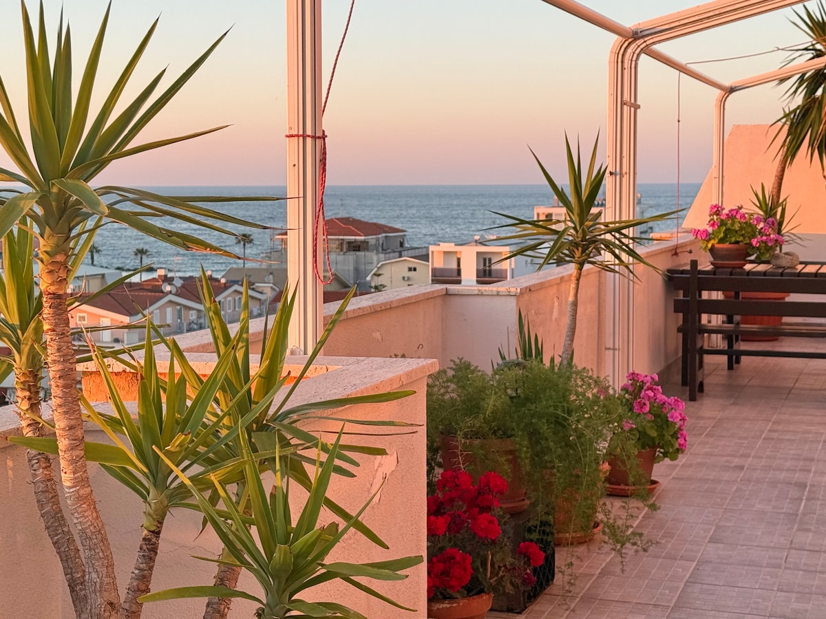 Benvenuti nel nostro accogliente angolo sul mare! 🌊 Ampio appartamento di 90 m² al 6° piano con 2 camere da letto, soggiorno e terrazza soleggiata di 120 m² con vista su monti, mare e città. A vostra disposizione lettini, zona barbecue, parcheggio gratuito, Wi-Fi, aria condizionata. Accogliamo volentieri animali domestici 🐾. A pochi minuti dalla spiaggia, vicino a negozi e ristoranti. Perfetto per famiglie e amici.