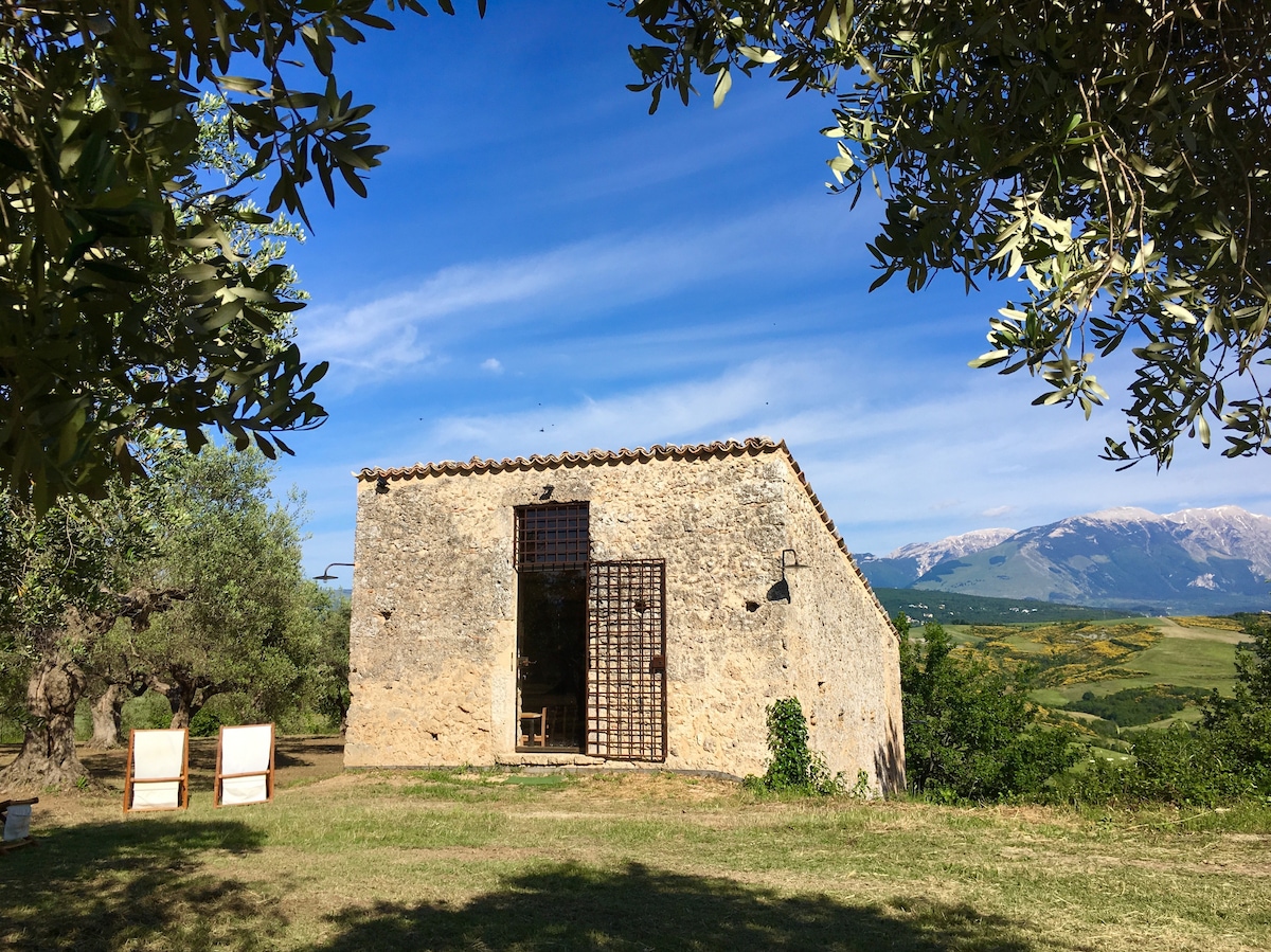 Live an authentic experience in an unspoiled rural place! Il Pagliaio is an old barn hidden in a peaceful secular olive grove overlooking Mount Maiella. Set high on a hill it is away from it all but it is only 3km from Tocco da Casauria village, 5km from the highway, 45km from the main local town Pescara. Relax under the shade of a hundred olive trees or head off to discover the surroundings. The inside is an open space in a simple and basic style, reflecting the rural spirit of the place.