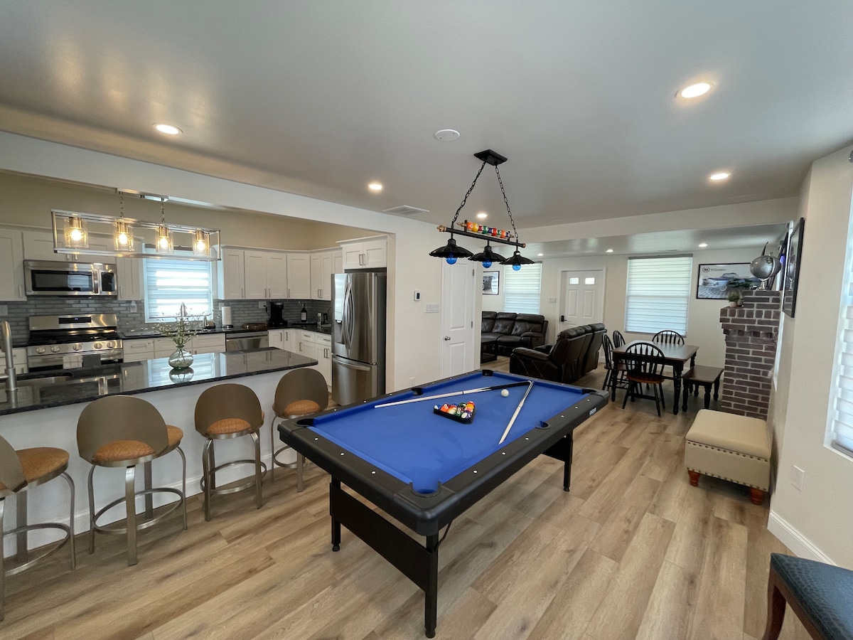 Entire 1st floor apartment w/ private entrances, newly renovated & very modern with fast WiFi. A short walk to the beautiful beach & short drive to the casinos, Stockton AC Campus, fine dining, the convention center, boardwalk hall & "the walk" in AC. The 2 bedroom home can accommodate 6 guests (master queen bed & 2nd bedroom bunks; twin bed over full bed) & a sofa bed in the living room + 3 smart TVs where you can access popular apps. Summer includes 6 beach chairs & tags.