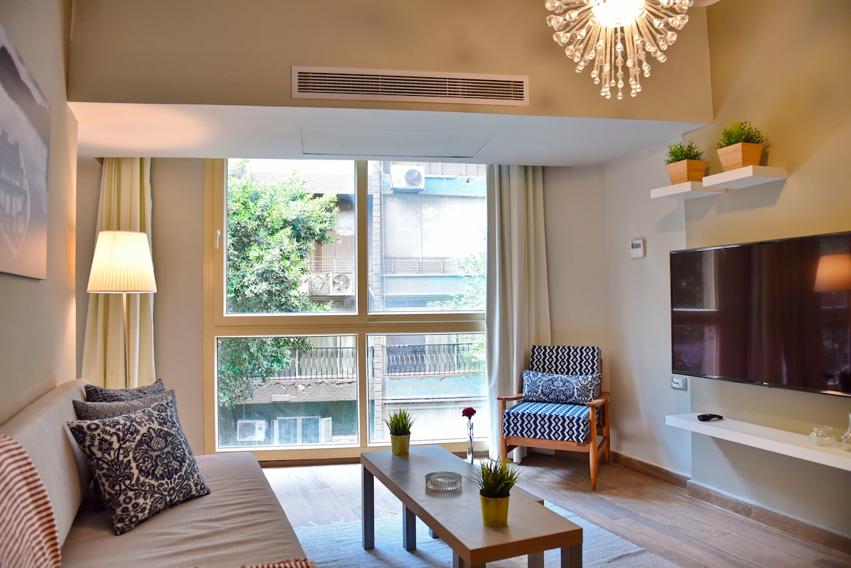 - 1611 y Haven Hospitality - Experience modern comfort in the heart of Zamalek, Downtown Cairo, at 1611 — a newly renovated and furnished 2-bedroom, 1-bath fifth-floor serviced apartment. Thoughtfully designed, it features a fully equipped kitchen and a private balcony with seating and city views. Perfectly located in the heart of Zamalek, steps from top cafés, galleries, and the Nile. Sleeps up to 4 guests.