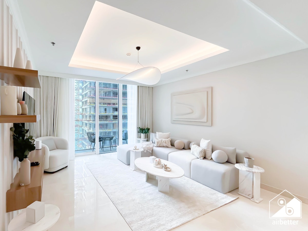 This modern 1-BDR apartment is located in Seven Palm Residences, just steps away from the beach, Nakheel Mall, and the famous West Beach promenade. 📍 Location highlights: • 2 min walk to the beach • 5 min walk to Nakheel Mall • 10 min drive to Dubai Marina • 25 min drive to Downtown Dubai Guests have access to the rooftop infinity pool, gym, and private beach, offering the perfect balance of relaxation and Dubai luxury..Making it the perfect home away from home in Palm Jumeirah.
