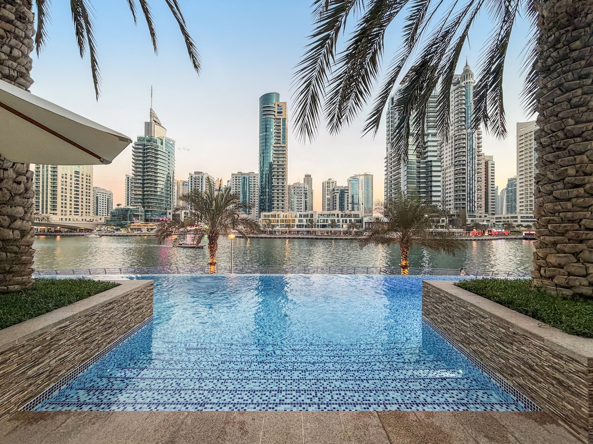 The studio is located in Palm Jumeirah, a famous landmark of Dubai. Grandeur Residences complex has its own private beach and pool 10 meters away from the building and underground parking, everything free of charge. The studio has a very peaceful backyard and a small private garden, where you can relax. Neighboring our residency is a famous 5-star hotel Zabeel Saray with great restaurants, where you have a 30% DISCOUNT on everything.