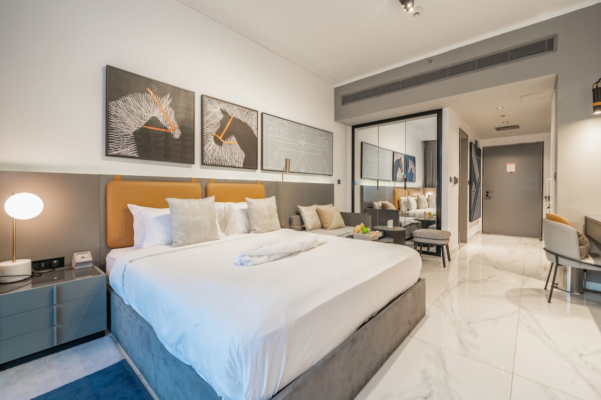 Enjoy a stylish experience at this centrally-located place.Experience Hollywood-inspired luxury in this elegant Paramount Midtown residence, offering breathtaking Burj Khalifa and Downtown skyline views. Designed for comfort and style, the apartment features a modern open-plan layout, premium furnishings, and floor-to-ceiling windows that flood the space with natural light.