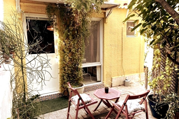 This unique place has a style all of its own, recently underwent renovation. This quiet, cozy and private one bedroom apartment is part of a detached villa which includes a cozy patio/garden exclusive for guests. The queen bed is placed on a mezzanine overlooking a wide living room, next to a recently renewed kitchen. Includes free parking just outside the residence and a Private pool which requires permission from the owner in advance to be used Pets are allowed under certain conditions.