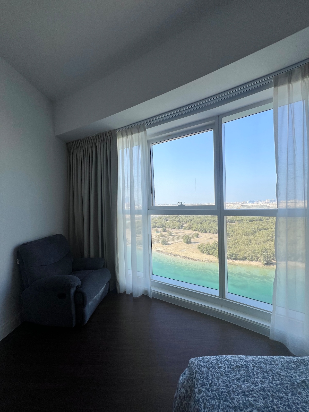 Wake up with a Sea View and peaceful Mangroves 🌿 All amenities available (washing machine, fridge, stove, coffee machine...etc) Private car parking (with access card) Swimming Pool 🏊& Jacuzzi Gym 🏃🏻➡️ Bus station in front of bldg 5 mins from the city 20 mins from Airport Smart home with Alexa Luxurious Private Room in a 2 bedroom flat has all you need during your stay. Other room is occupied by the host. Easy access to the flat with Smart Door 🚪 All you need with affordable budget.